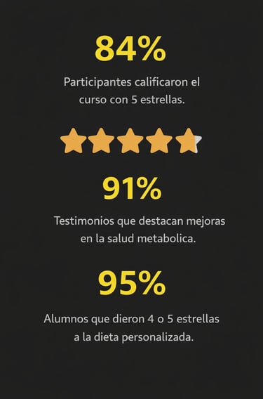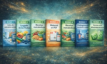 Recibes acompañamiento completo: curso, motivación, prediagnóstico metabólico y una guía detallada para lograr una transformación fácil y sostenible.